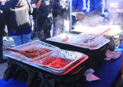 Located in parking lot 19-J of MetLife Stadium and hosted by by four loyal season ticket holders, the Big Blue BBQ attracts hundreds of fans from all over on NFL Sundays. Once there, guests enjoy a buffet with options such as freshly-grilled hamburgers, hot dogs, baked beans, baked ziti, sausage and peppers, corn and more. Their motto is good food, good friends and good times, and that’s exactly what you will find at the Big Blue BBQ!