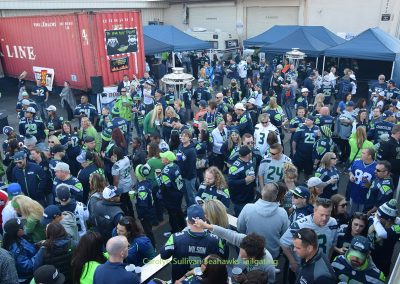 Hawk Alley is the place to be on Seattle Seahawks game days! Located on Utah St., a block west of 1st Ave. S., the Hawk Alley Tailgate has become the ultimate tailgate on NFL game days in Seattle, with its premium food, micro beer on tap, tents, TVs and private restrooms. The Hawk Alley Tailgate has competition-winning food, beer and other beverages to wash it down, and a strong sense of community among Seahawks’ faithful fans. The goal of this tailgate is more than just having fun on game days; it’s about bringing people together and uniting the best fans in the world!